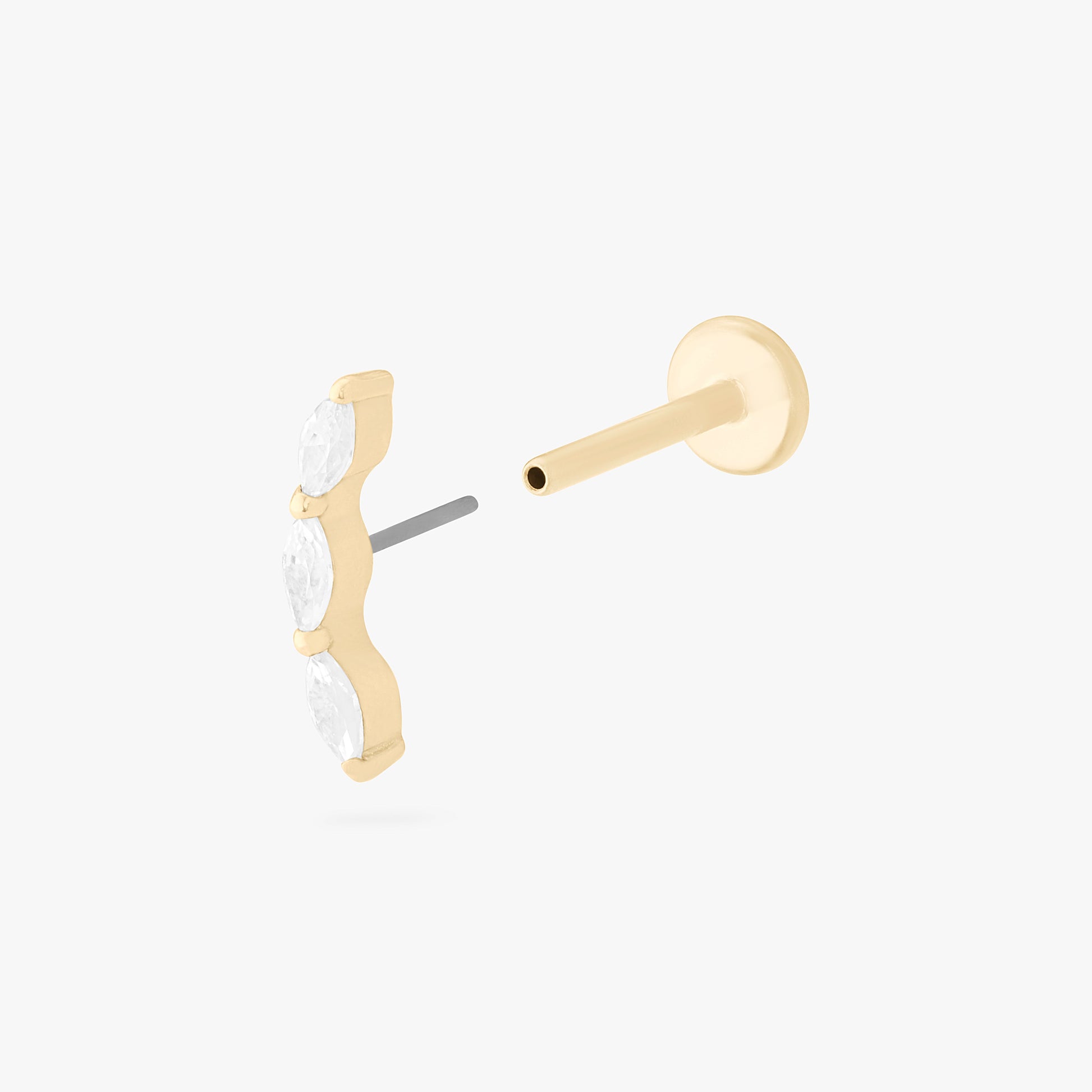 Triple the shine, triple the compliments. The 14K Curved CZ Pear Flatback gives your ear a soft constellation effect.